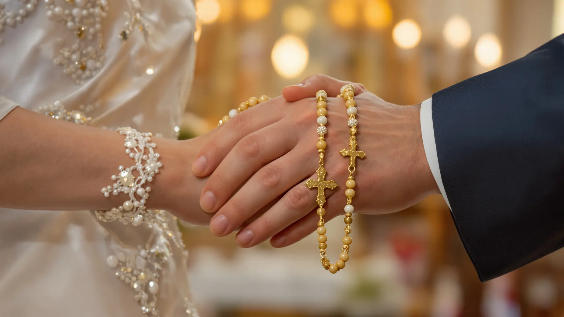 Un lazo o rosario en forma de ocho se coloca alrededor de los hombros de los novios durante la ceremonia — uniendo dos vidas en una sola ante Dios.